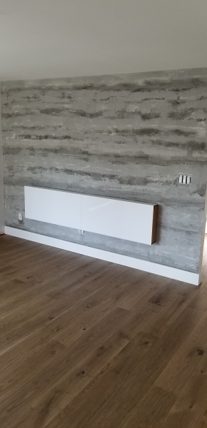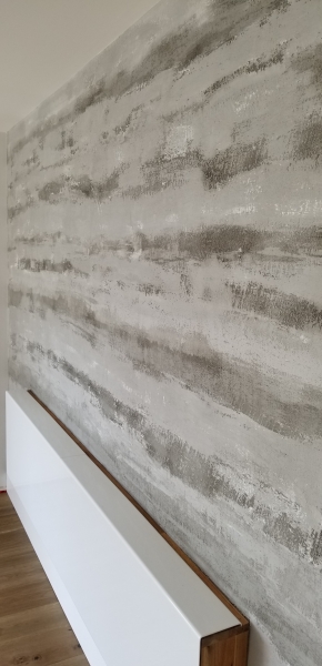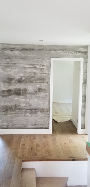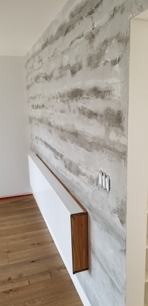 For this project we were asked to design some feature walls for a home in North Van that was undergoing a total renovation. The client wanted the walls to be rough to the touch, have a dragged appearance, shadings like board form concrete and colors of gray, mid gray and white. It took some time to design this finish; however after some work and modifications during the install we finally achieved exactly what the client wanted. Our company installs a lot of different finishes, and due to every finish being custom, a lot of the time we work with our clients during the process to ensure we get it just right.