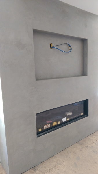 Fireplaces like these can be done on any substrate however; and if they are a new structure, drywall or cement board are good options along with bricks and blocks being great alternatives. If you have an existing fireplace then we can easily cover over the entire structure with our plasters without having to do any major renovations.